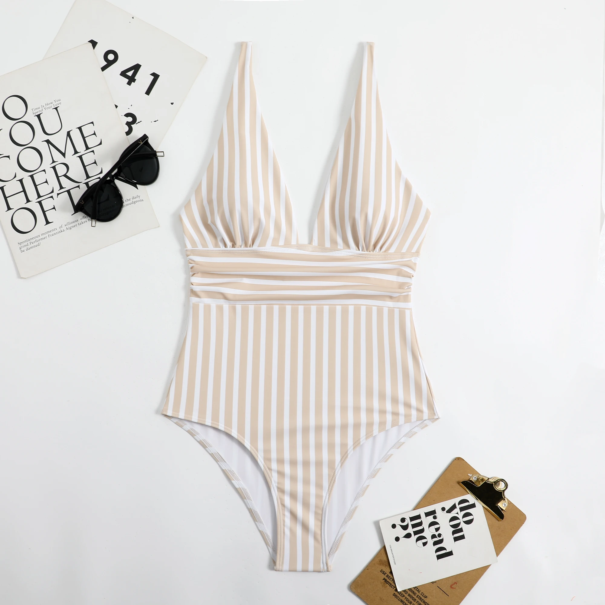 Summer Sexy Striped One Piece Swimsuit Closed Female Swimwear Push Up Body Women's Swim Wear Bathing Suit Beach Pool Bather 2023